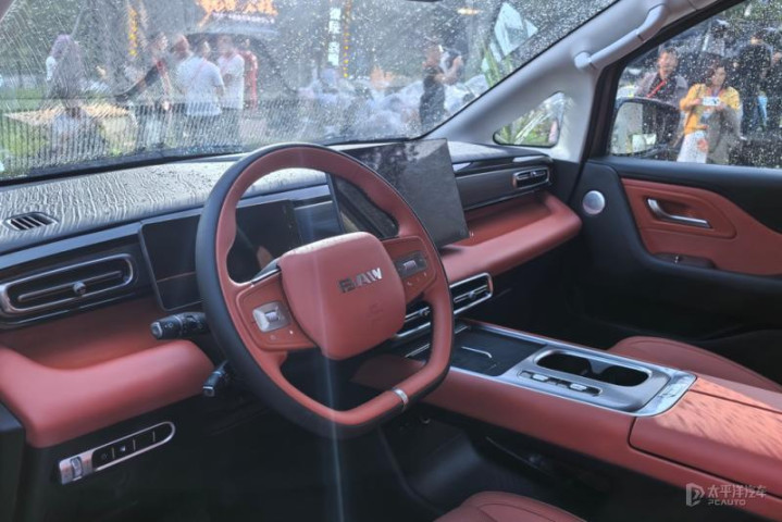 内饰造型平整简洁,配有双辐式方向盘、液晶仪表盘和悬浮式中控。内部拥有7座/9座两种座椅布局,整体定位侧重简单的商务接待,同时7座版本配备小桌板,而内部黑红双拼的设计能提升整车质感。