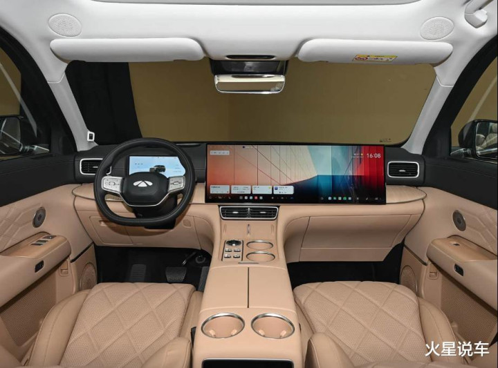 进入车内,让人忍不住惊讶,奇瑞风云T11这是把电脑屏幕搬到了车内了么?中控台被一块巨大的屏幕占据了绝大部分空间,工作人说尺寸达到了30英寸,惭愧,小编我用的台式机屏幕都只是23.8寸的。而且,在后排,它还有着一块17.3英寸的超大娱乐屏,就算是在路途中可以看大片。车机系统功能和车机芯片厂家暂时没有披露。车内还搭载了9.2L冷暖冰箱和23喇叭的豪华音响系统,豪华感相当不错。